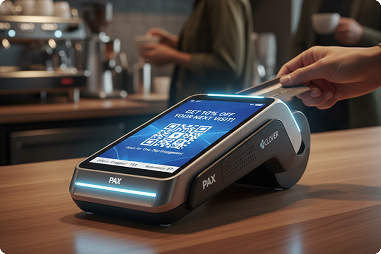 Example: A customer pays and immediately sees a prompt like “Get 10% off your next visit” – complete with a QR code for one-tap engagement.