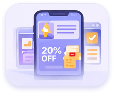 Offer multiple Smart Page types: Loyalty rewards, digital coupons, app download CTAs, and custom promotional pages tailored to your brand.